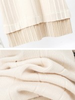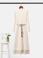 Apricot Knit A-line Pleated Dress in Ruffle Detail