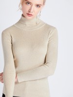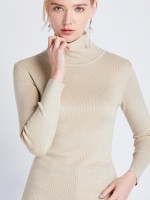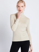 Apricot Long Sleeve High Neck Flash Silk Knitted Sweater