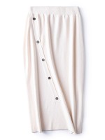 Apricot Oblique Button Wrap Maxi Knitted Skirts