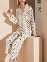 Apricot Polka Dots Print Long Sleeved Pajama Set