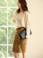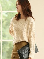 Apricot Pullover Round Neck Twist Knit Sweaters