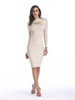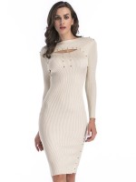 Apricot Ribbed Bodycon Knitted Dress with Rivet Detail