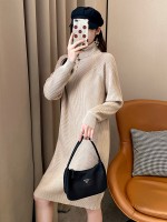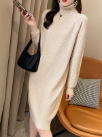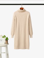 Apricot Roll Neck Ribbed Shift Knitted Dress