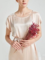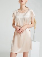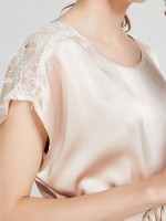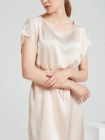 Apricot Round Neck Silk Nightdress with Lace Detail
