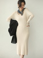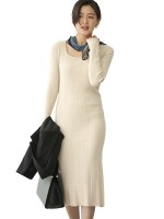 Apricot Scoop Neck Ribbed Style Midi Dress