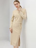 Apricot Stand Collar Tie Waist Knit Shift Dress