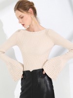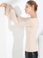 Apricot Thick Flared Sleeve Scoop Neck Sweater with Stud Beads