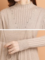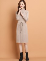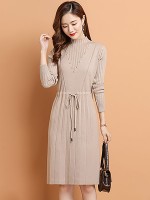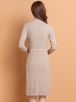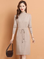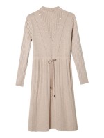 Apricot Tie Waist Midi Dress with Rhinestone Decoration