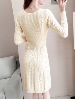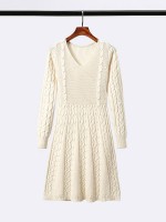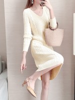 Apricot V-neck Cable Knitted Dress