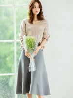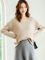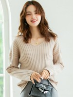 Apricot V-neck Ribbed Style Sweater