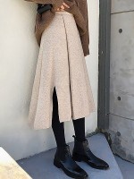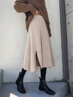 Beige Cutout Edge A-line Knitted Skirts