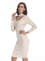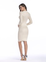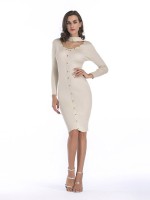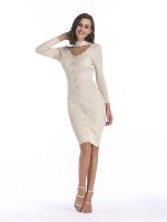 Beige Cutout Neckline Bodycon Dress with Rivet Detail