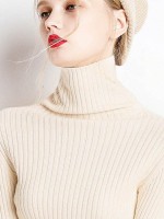 Beige Funnel Neck Base Medium Knitted Sweaters