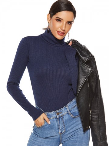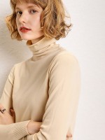 Beige Funnel Neck Solid Color Knitted Sweaters