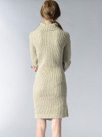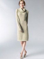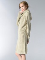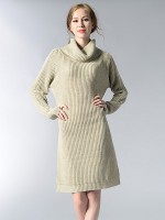 Beige Loose Midi Knit Dresses With Funnel Neck