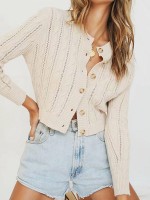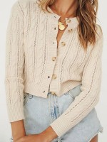 Beige Round Neck Cable Cardigan