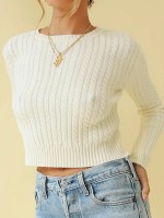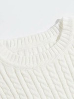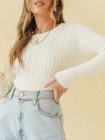 Beige Round Neck Cable Knit Cropped Top