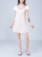 Beige V Neck Hollow Out Lace Silk Nightdress