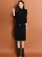 Black A-line Knit Dress with Vest Top