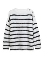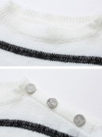 Black and White Striped Sweater with Button Decoration