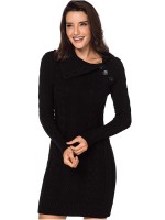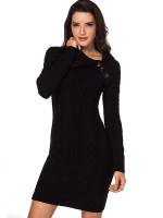 Black Cable Sweater Dress with Asymmetric Collar