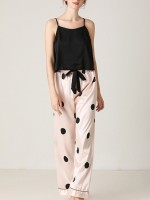 Black Camisole Pajama Set with Polka Dots Printed Pants