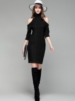 Process: 3/4 sleeves, Turtleneck, Cold Shoulder, Slim fit