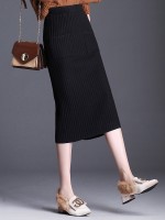 Black Front Pocket Wrap Knitted Skirts