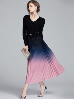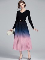 Black Gradient Color Pleated Knitted Dress