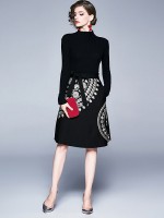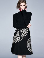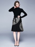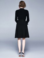 Black High Neck knit Dress with Bowknot Waist
