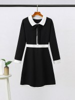 Black Knit A-line Dress in Color Block