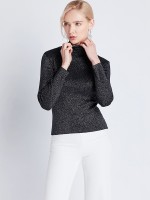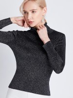 Black Long Sleeve High Neck Flash Silk Knitted Sweater