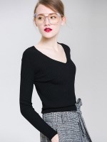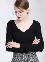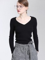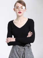 Black Long Sleeves V-neck Bodycon Knit Sweaters