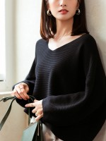 Black Oversize V-neck Lazy Style Knit Sweaters