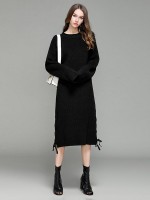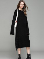 Black Oversized Maxi Knit Dresses With Knot Details