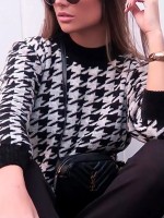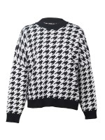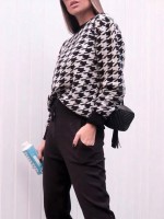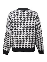 Process: Long sleeves, Round neck, Houndstooth pattern, Loose fit