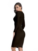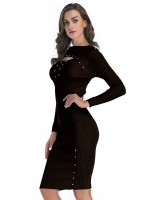 Black Ribbed Bodycon Knitted Dress with Rivet Detail