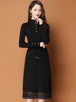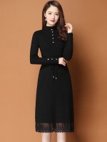 Black Ribbed Knitted Dress with Lace Trim
