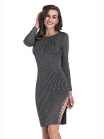 Black Ribbed Style Split Knitted Dress