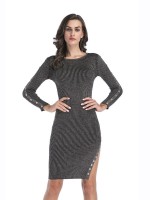Process: Plain design, Bodycon style, Side split, Button decoration