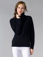 Black Roll Neck Medium Knitted Sweaters