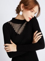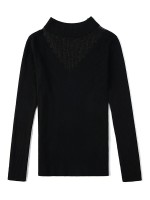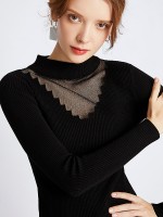 Black Round Neck Hollowed-out Lace Mesh Sweater