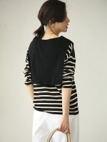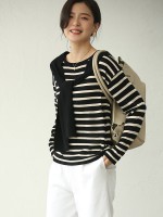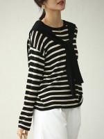 Black Striped Round Neck Knit Top with Cape