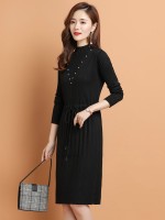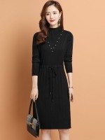 Black Tie Waist Midi Dress with Rhinestone Decoration