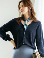 Black V Neck Beaded Knit Top