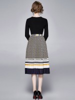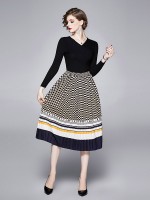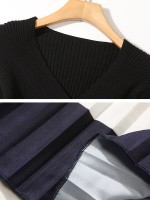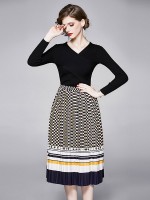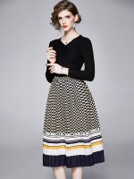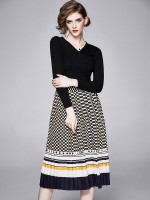 Black V Neck Polka Dots Print Knitted Dress