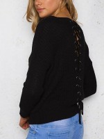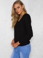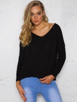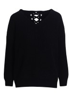 Black V-neck Loose Back Air Eye Bandage Knitted Sweater