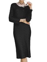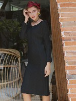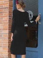 Black V-neck Ribbed Pattern Maxi Knit Dresses