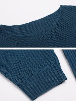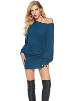 Blue Boat Neck Knit Dresses With Cape Sleeves