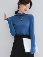 Blue CHIC Stand Collar Long Sleeves Knit Sweaters